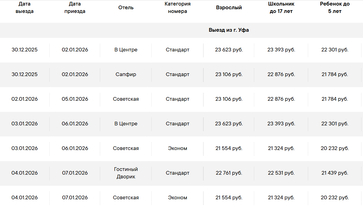 - В редких случаях, при объединении рейсов, возможно изменение посадочных мест в автобусе, о чем за сутки до выезда информирует Туроператор.